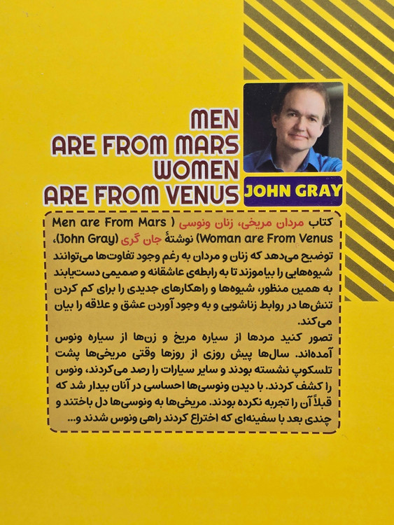 این کتاب راهنمای مفیدی در زمینهی روابط زناشویی است و بر شما آشکار میسازد مرد و زن در بسیاری از جوانب زندگی با همدیگر تفاوت دارند و تفکر، احساسات، درک، نحوه واکنش، خواستهها و نیازهای عشقی آنها با هم فرق دارد و به شکلی متفاوت از هم قدردانی میکنند و به راستی به نظر میرسد که آنها از دو سیاره مختلف به زمین آمدهاند و به زبانهای مختلفی حرف میزنند و به مواد غذایی متفاوتی نیاز دارند.