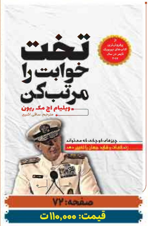 ویلیام اچ. مک ریون در کتاب تختخوابت را مرتب کن به بیان 10 درس مهم و باارزشی که در زمان خدمتش در نیروی دریایی آمریکا فرار گرفته، میپردازد. او در این کتاب که در گروه پرفروشترینهای نیویورک تایمز قرار دارد در مورد چیزهای کوچکی صحبت میکند که زندگی و یا حتی دنیای شما را تغییر میدهد.