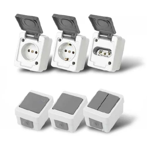 طراحی کلید پریز های روکار بارانی به گونه ایست که راه نفوز آب در اون وجود ندارد و حتی روی کلید پریز ها درپوشی وجود دارد که از ورود آب باران جلوگیری میکند.