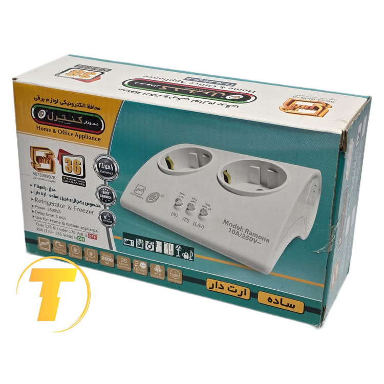 محافظ برق ارت دار یخچال و فریزر طول 1.5 نمودار کنترل مدل M115 رامونا 2 دارای یک خانه ارت دار و مخصوص یخچال و فریزر و لوازم برقی آشپزخانه می باشد.جنس بدنه محافظ M115 از پلاستیک باکیفیت ساخته شده است. جنس بدنه محافظ M115 از پلاستیک باکیفیت ساخته شده است. محافظ 2500 ولت آمپر نمودار کنترل برای جلوگیری از ورود نوسانات ناشی از برق شهر و رعد و برق بر روی خطوط شیکه برق به دستگاه شما میباشد. این محافظ دارای سه نشانگر ال ای دی میباشد که هر نشانگر دارای عملکرد زیر میباشد: 1- نشانگر ال ای دی سبز هنگام وصل خروجی روشن می شود. 2- نشانگر ال ای دی نارنجی در هنگام تایم تا وصل خروجی روشن میشود. 3- نشانگر ال ای دی قرمز اگر ولتاژ ورودی خارج از محدوده استاندارد باشد روشن میشود. در هنگام وصل برق اگر ولتاژ در محدوده مجاز جدول باشد نشانگر ال ای دی نارنجی تا زمان تایم روشن میشود و بعد از آن خاموش و نشانگر ال ای دی سبز که نشان دهنده وصل خروجی است روشن میشود.اگر در هنگام کار محافظ، نشانگر ال ای دی قرمز روشن شود این بدان معناست که ولتاژ ورودی در محدوده غیر مجاز میباشد. اگر ولتاژ به محدوده مجاز برسد عملکرد بالا تکرار میشود. محافظ دارای یک خروجی بوده که دستگاه های دارای آداپتور نیز براحتی قابل اتصال به خروجی میباشد.