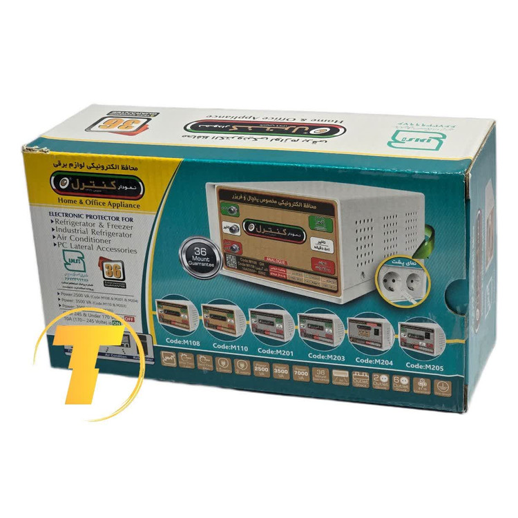 محافظ برق فلزی نمودار کنترل مدل M203 مخصوص یخچال صنعتی و ویترینی می باشد. جنس بدنه محافظ M203 از فلز ساخته شده است. این محافظ برای جلوگیری از ورود نوسانات ناشی از برق شهر و رعد و برق بر روی خطوط شیکه برق به دستگاه شما میباشد. این محافظ دارای سه نشانگر ال ای دی میباشد که هر نشانگر دارای عملکرد زیر میباشد: 1- نشانگر ال ای دی سبز هنگام وصل خروجی روشن می شود. 2- نشانگر ال ای دی نارنجی در هنگام تایم تا وصل خروجی روشن میشود. 3- نشانگر ال ای دی قرمز اگر ولتاژ ورودی خارج از محدوده استاندارد باشد روشن میشود. در هنگام وصل برق اگر ولتاژ در محدوده مجاز جدول باشد نشانگر ال ای دی نارنجی تا زمان تایم روشن میشود و بعد از آن خاموش و نشانگر ال ای دی سبز که نشان دهنده وصل خروجی است روشن میشود.اگر در هنگام کار محافظ، نشانگر ال ای دی قرمز روشن شود این بدان معناست که ولتاژ ورودی در محدوده غیر مجاز میباشد. اگر ولتاژ به محدوده مجاز برسد عملکرد بالا تکرار میشود. محافظ دارای دو خروجی میباشد.