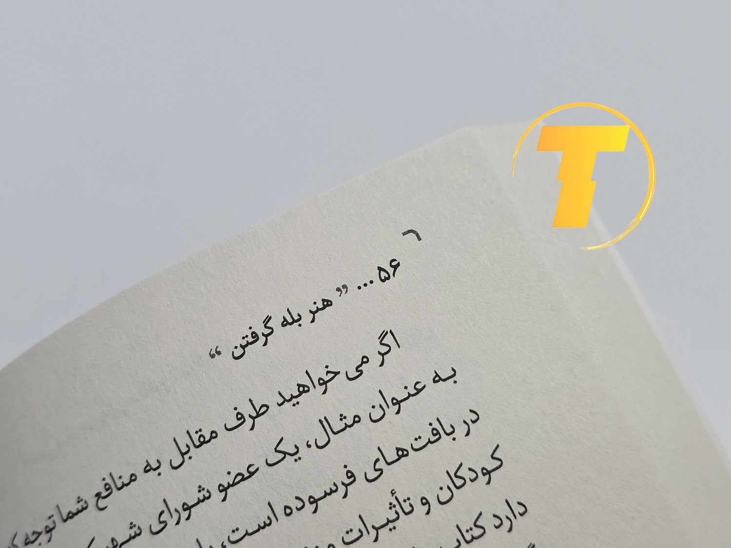 «هنر بله گرفتن» کتابی است که بعد از خواندنش متوجه میشوید مذاکره چیزی فراتر از معاملهی برد-باخت است؛ این کتاب چارچوبی برای تبدیل تعارض به همکاری ارائه میدهد. ساختار فصلها روشن، مثالها واقعی و نکات عملیاند؛ نه نظریههای انتزاعی که فقط در کنفرانسها کاربرد داشته باشند. مترجم سولماز موثق تلاش کرده زبان روانی برای متن فراهم کند که در بسیاری از بخشها موفق است، هرچند در برخی اصطلاحات تخصصی ترجمه میتوانست دقیقتر یا شفافتر باشد — اما عملاً سد بزرگی در فهم ایجاد نمیکند.
