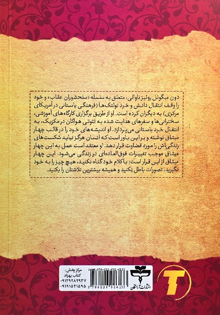 اثری شناختهشده در حوزه خودشناسی و رشد فردی است که بر پایه آموزههای کهن تولتک نگاشته شده است. نویسنده در این کتاب چهار اصل ساده اما بنیادین را مطرح میکند که رعایت آنها میتواند به تغییر نگرش فرد نسبت به خود، دیگران و زندگی منجر شود. متن کتاب بهگونهای نوشته شده که مفاهیم عمیق را بدون پیچیدگی و با زبانی روان منتقل میکند.