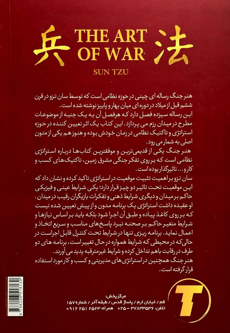 اثری کلاسیک در حوزه استراتژی و تفکر نظاممند است که به بررسی اصول برنامهریزی، شناخت موقعیت و تصمیمگیری آگاهانه میپردازد. محتوای کتاب در قالب فصلهای کوتاه و منسجم تنظیم شده و هر بخش به یکی از جنبههای مدیریت شرایط، ارزیابی توانمندیها و پیشبینی پیامدها اختصاص دارد. ساختار دقیق و زبان موجز اثر، انتقال مفاهیم را روشن و مستقیم میکند.
