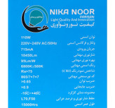 لامپ ال ای دی استوانه ای 110 وات نیکانور دارای سرپیچ E27 و رنگ مهتابی با شاخص رنگ نمایی Ra≥80 با زاویه تابش 200 درجه و با محدوده عملکرد دمایی 10- تا 40+ درجه سانتیگراد که فاقد هرگونه اشعه فرابنفش و UV است.