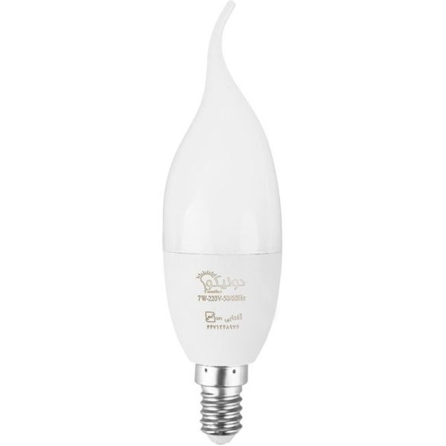 لامپ ال ای دی اشکی توان 7 وات برند دونیکو با پایه E14 که بجای استفاده از تنگستن یا ماده فلورسنت از چیپ های ال ای دی فوق کم مصرف در آن استفاده شده است و با وجود توان بالا مصرف برق بسیار کمی دارد و در عین حال طول عمری معادل 15000 ساعت را داراست که چهار برابر لامپهای کم مصرف و سی برابر لامپهای رشته ای است.